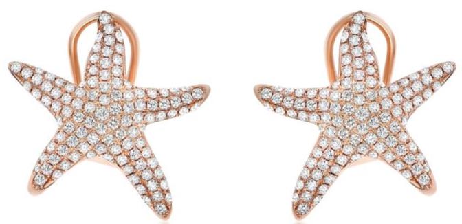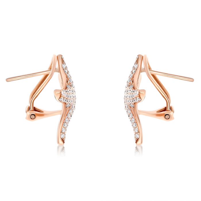 14KT ROSE GOLD CLIP ONEARRINGS. 3D MULTI ROW CLASSIC FUN STARFISHDESIGN. DIAMONDS ARE F/G COLOR, VSSI CLARITY 1.10 CARATS. WRITTEN APPRAISAL AVAILABLE. COMES IN A PRESENTABLE GIFT BOX.