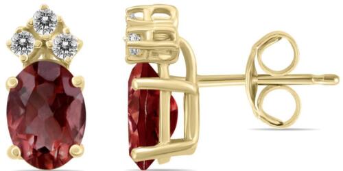 1.10CT DIAMOND & AAA GARNET 14KT YELLOW GOLD OVAL & ROUND CLASSIC STUD EARRINGS
