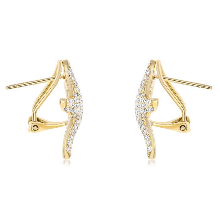 1.11CT DIAMOND 14KT YELLOW GOLD MULTI ROW CLASSIC STARFISH CLIP ON FUN EARRINGS