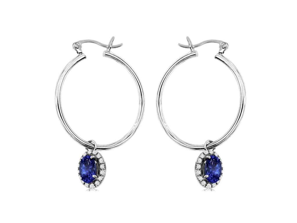 1.13CT DIAMOND & AAA TANZANITE 14K WHITE GOLD 3D OVAL HALO HOOP HANGING EARRINGS