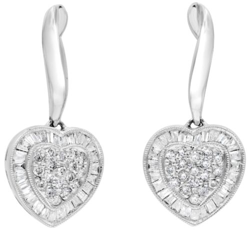 1.15CT DIAMOND 14KT WHITE GOLD ROUND & BAGUETTE HEART SHAPE FUN HANGING EARRINGS