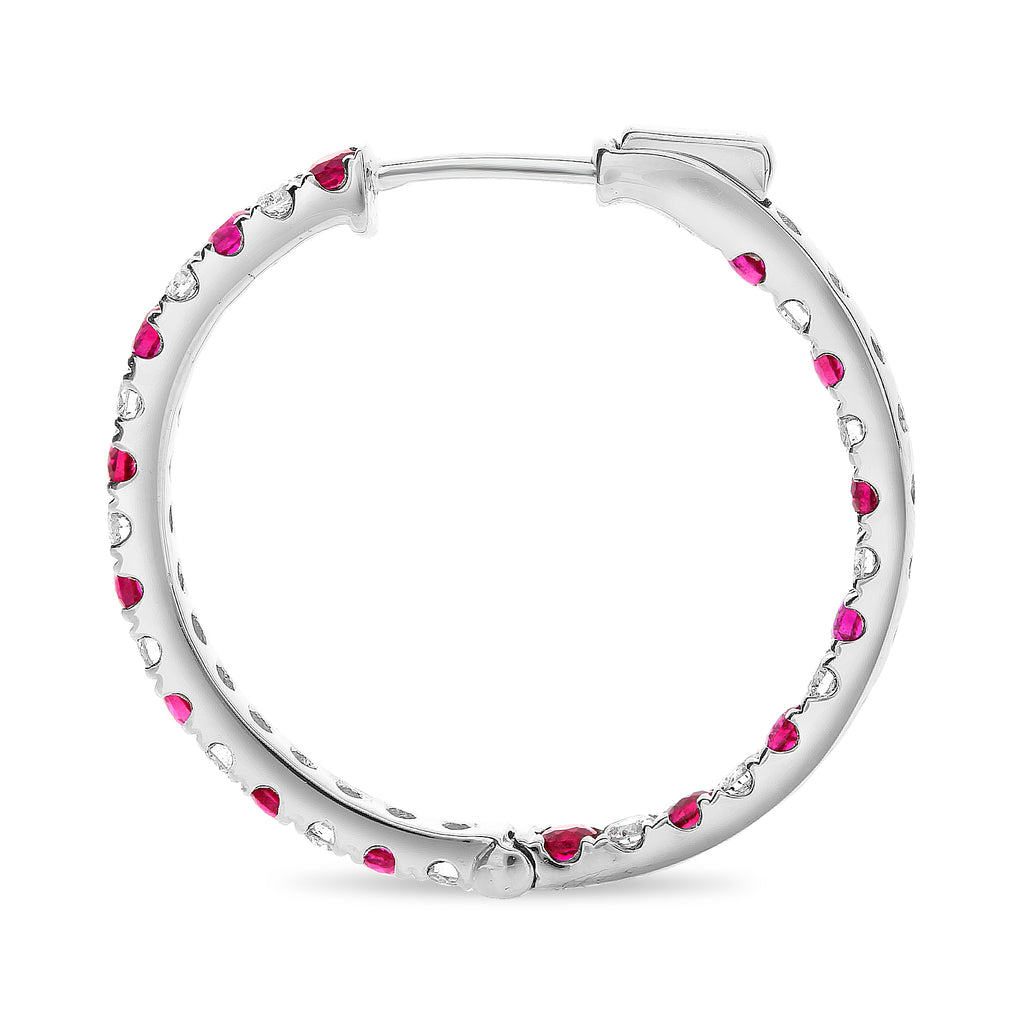 1.17CT DIAMOND & AAA RUBY 14KT WHITE GOLD 3D INSIDE OUT HOOP HANGING EARRINGS