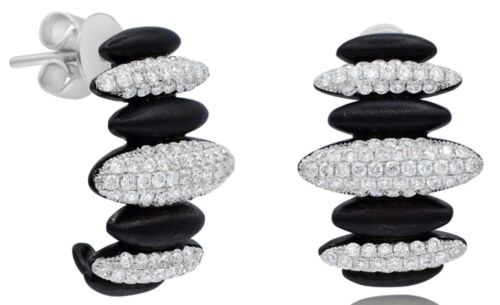 1.20CT DIAMOND 14KT WHITE & BLACK GOLD MULTI OVAL PAVE UMBRELLA HANGING EARRINGS