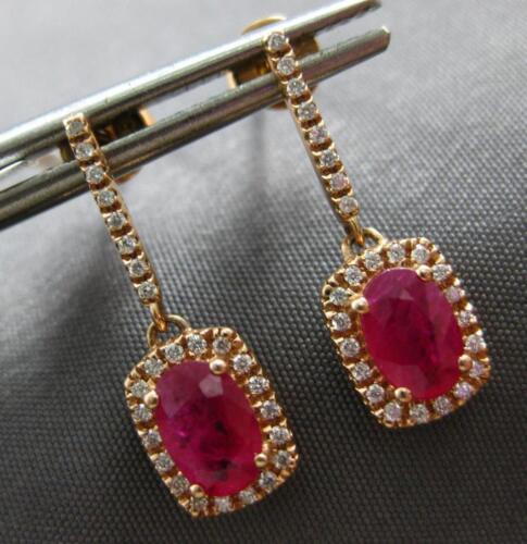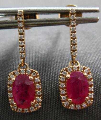 1.20CT DIAMOND & AAA RUBY 14K ROSE GOLD OVAL & ROUND SQUARE FUN HANGING EARRINGS