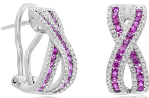 1.22CT DIAMOND & AAA RUBY 14KT WHITE GOLD CRISS CROSS INFINITY HANGING EARRINGS