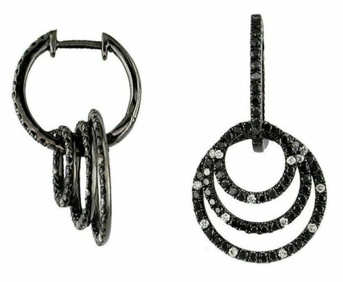 1.22CT WHITE & BLACK DIAMOND 14K WHITE GOLD 3D CIRCULAR JOURNEY HANGING EARRINGS
