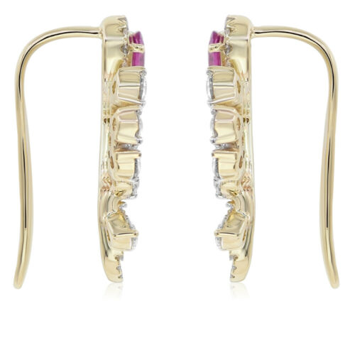 1.24CT DIAMOND & AAA PINK SAPPHIRE 14KT 2 TONE GOLD FLORAL FUN HANGING EARRINGS