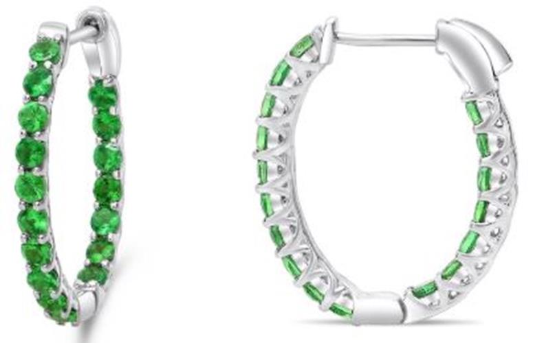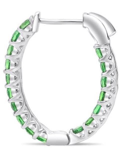14KT WHITE GOLD HOOP HANGING EARRINGS. 3D INSIDE OUT CLASSIC LUCIDA DESIGN. AAA TSAVORITES ARE 1.25 CARATS. MEASURES 20mm X 15mm. WRITTEN APPRAISAL AVAILABLE. COMES IN A PRESENTABLE GIFT BOX.