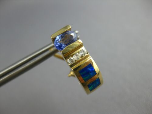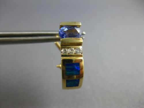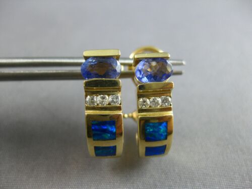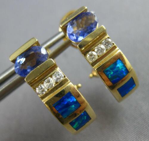 1.25CT DIAMOND & AAA TANZANITE & OPAL 14KT YELLOW GOLD UMBRELLA HANGING EARRINGS