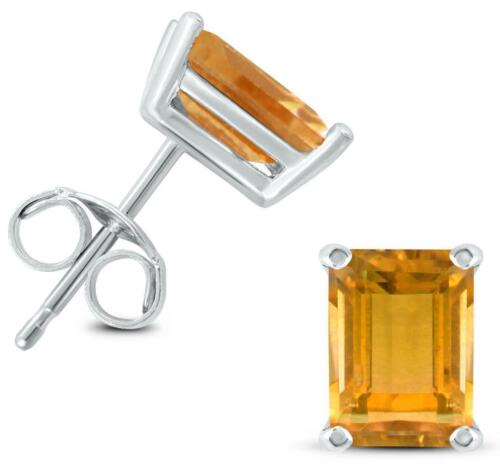 1.26CT AAA CITRINE 14KT WHITE GOLD 3D EMERALD CUT CLASSIC SOLITARE STUD EARRINGS