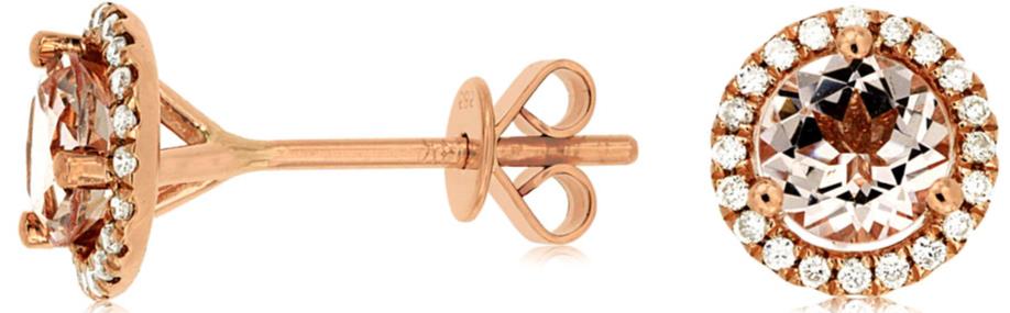 14KT ROSE GOLD STUD EARRINGS. 3D ROUND HALO CLASSIC MARTINI DESIGN. DIAMONDS ARE F/G COLOR, VSSI CLARITY 0.16 CARATS. AAA MORGANITES ARE 1.10 CARATS.WRITTEN APPRAISAL AVAILABLE. COMES IN A PRESENTABLE GIFT BOX.