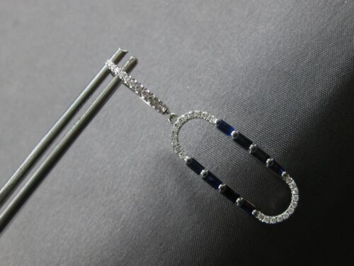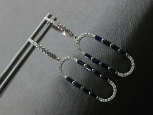 14KT WHITE GOLD HANGING EARRINGS. 3D OPEN OVAL DESIGN. ROUND DIAMONDS ARE F/G COLOR, VSSI CLARITY .30 CARATS. AAA BAGUETTE SAPPHIRES ARE 1.03 CARATS. MEASURES 35.5mm X 9.5mm. WRITTEN APPRAISAL AVAILABLE. COMES IN A PRESENTABLE GIFT BOX.