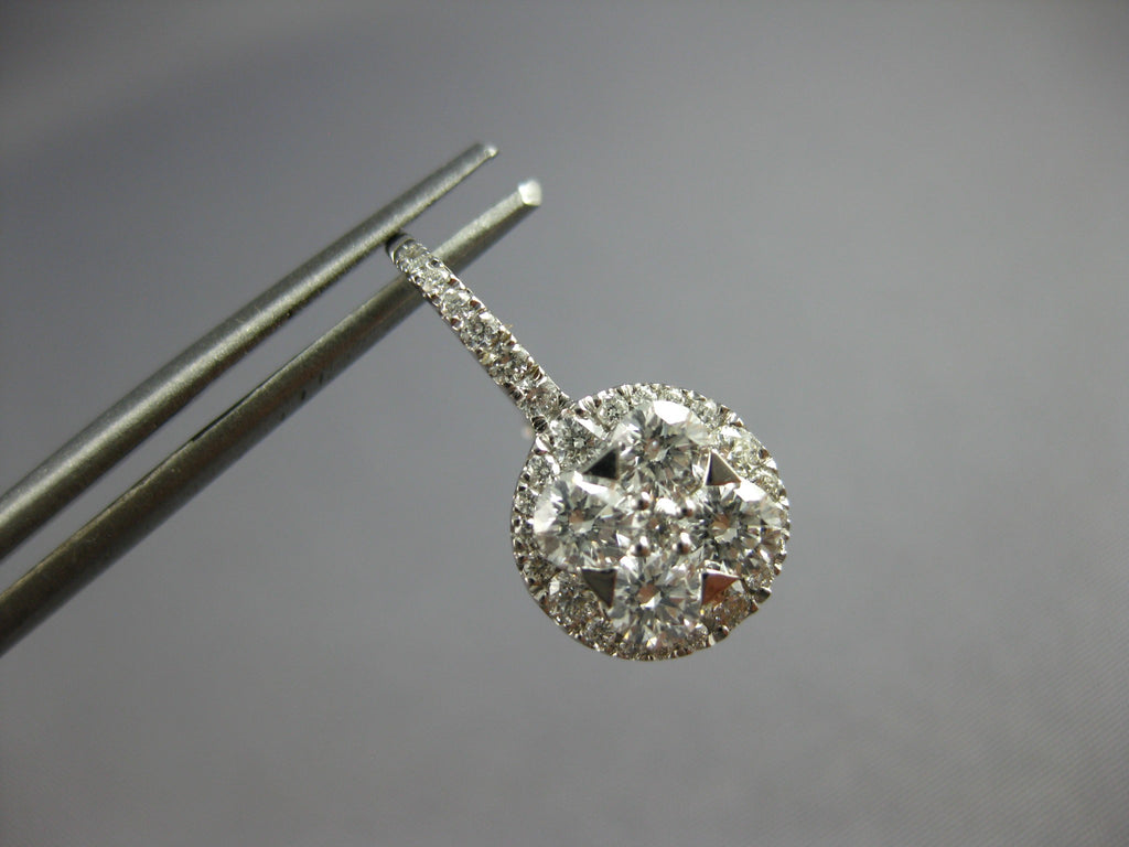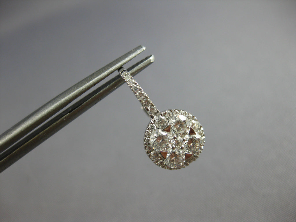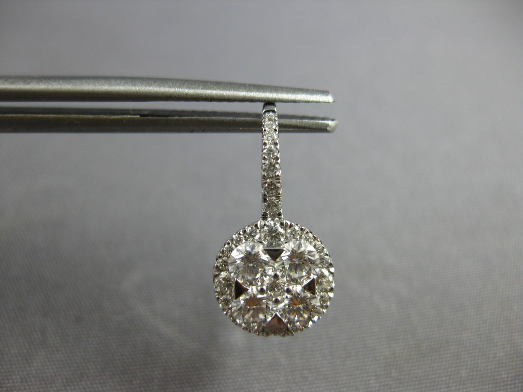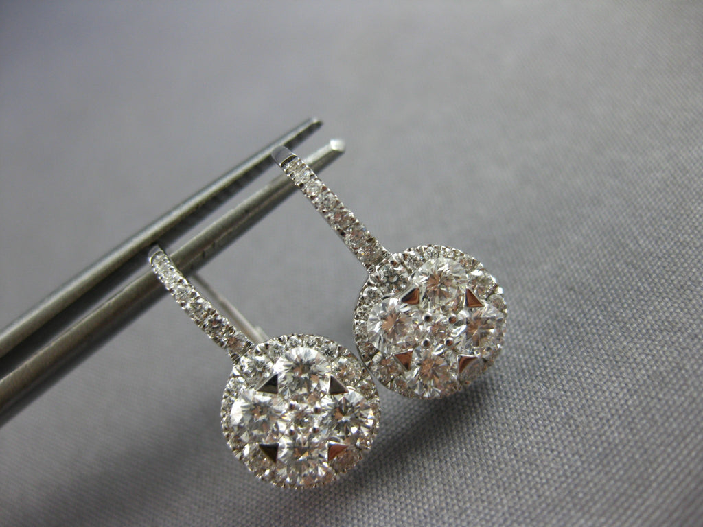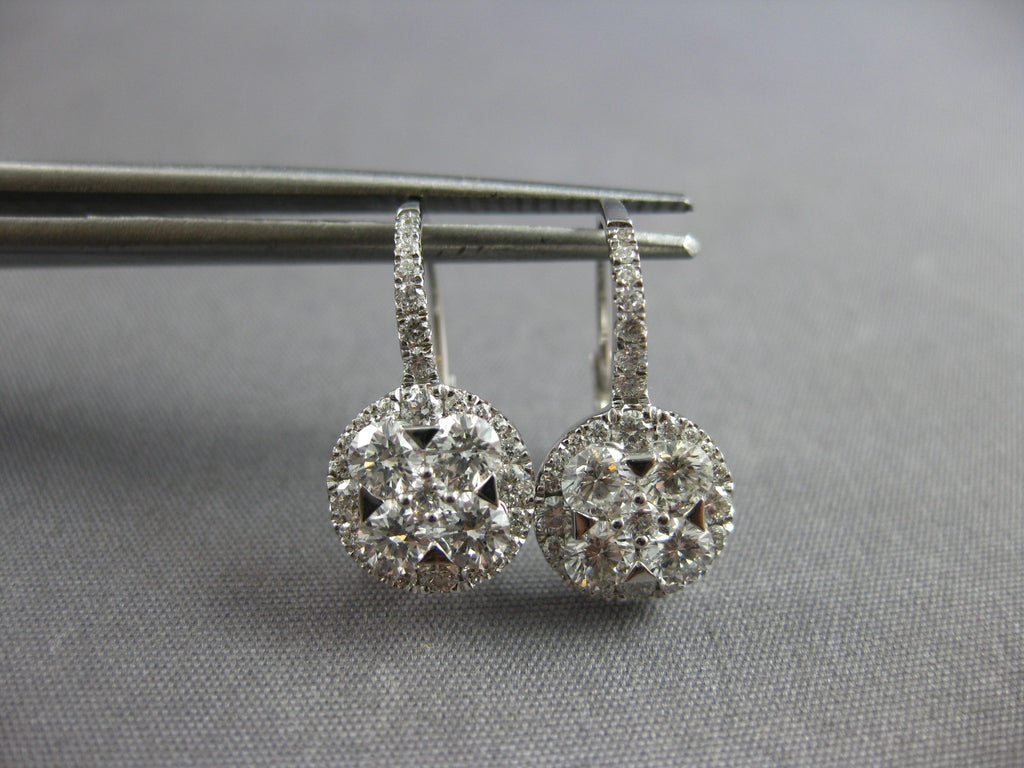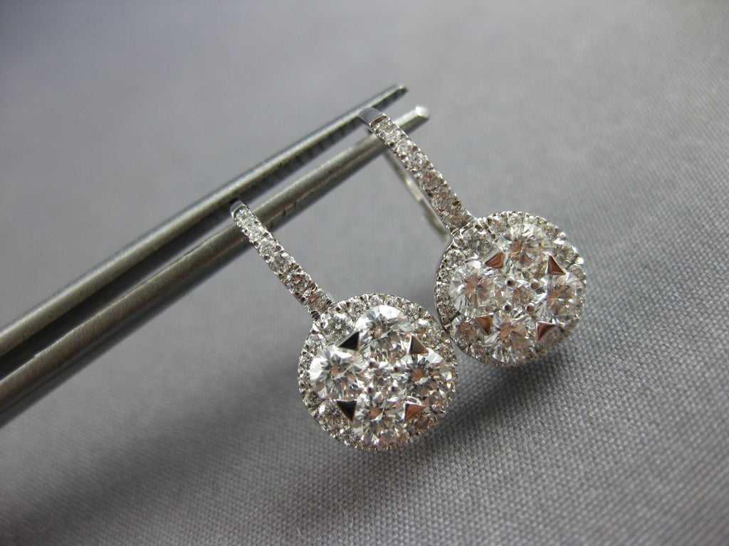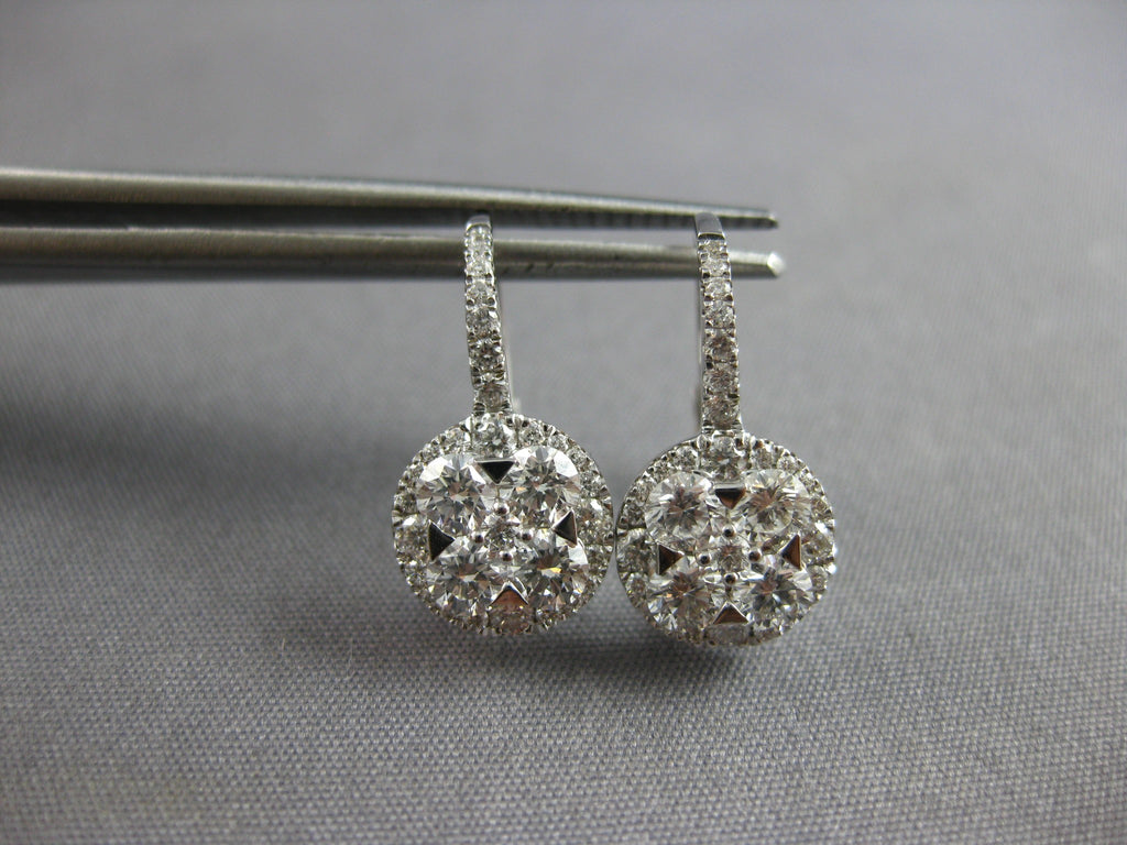 1.35CT DIAMOND 14KT WHITE GOLD 3D CLUSTER FLOWER HALO LEVERBACK HANGING EARRINGS