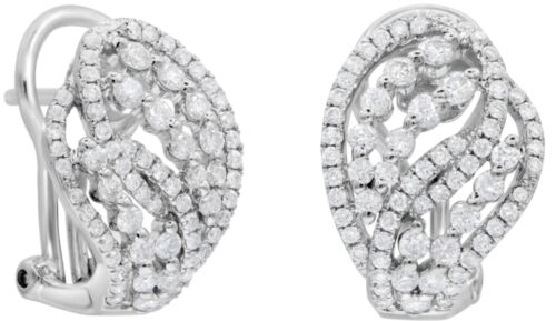 1.35CT DIAMOND 18KT WHITE GOLD 3D ROUND DOUBLE LEAF LOVE KNOT HANGING EARRINGS
