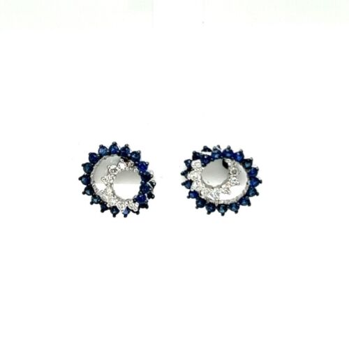 1.39CT DIAMOND & AAA SAPPHIRE 18K WHITE GOLD DOUBLE CIRCULAR STUD EARRINGS
