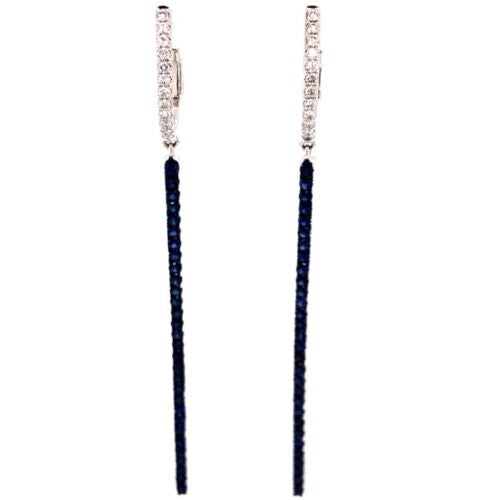 1.44CT DIAMOND & AAA SAPPHIRE 18KT WHITE GOLD 3D CLASSIC BAR HANGING EARRINGS