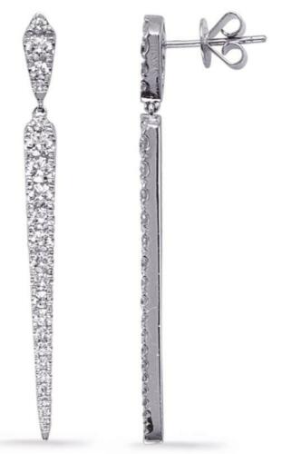 14KT WHITE GOLD HANGING EARRINGS. 3D CLASSIC GRADUATING JOURNEY BAR DESIGN. ROUND DIAMONDS ARE F/G COLOR, VSSI CLARITY 1.46 CARATS. MEASURES 4mm WIDE. WRITTEN APPRAISAL AVAILABLE. COMES IN A PRESENTABLE GIFT BOX.