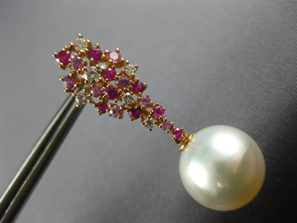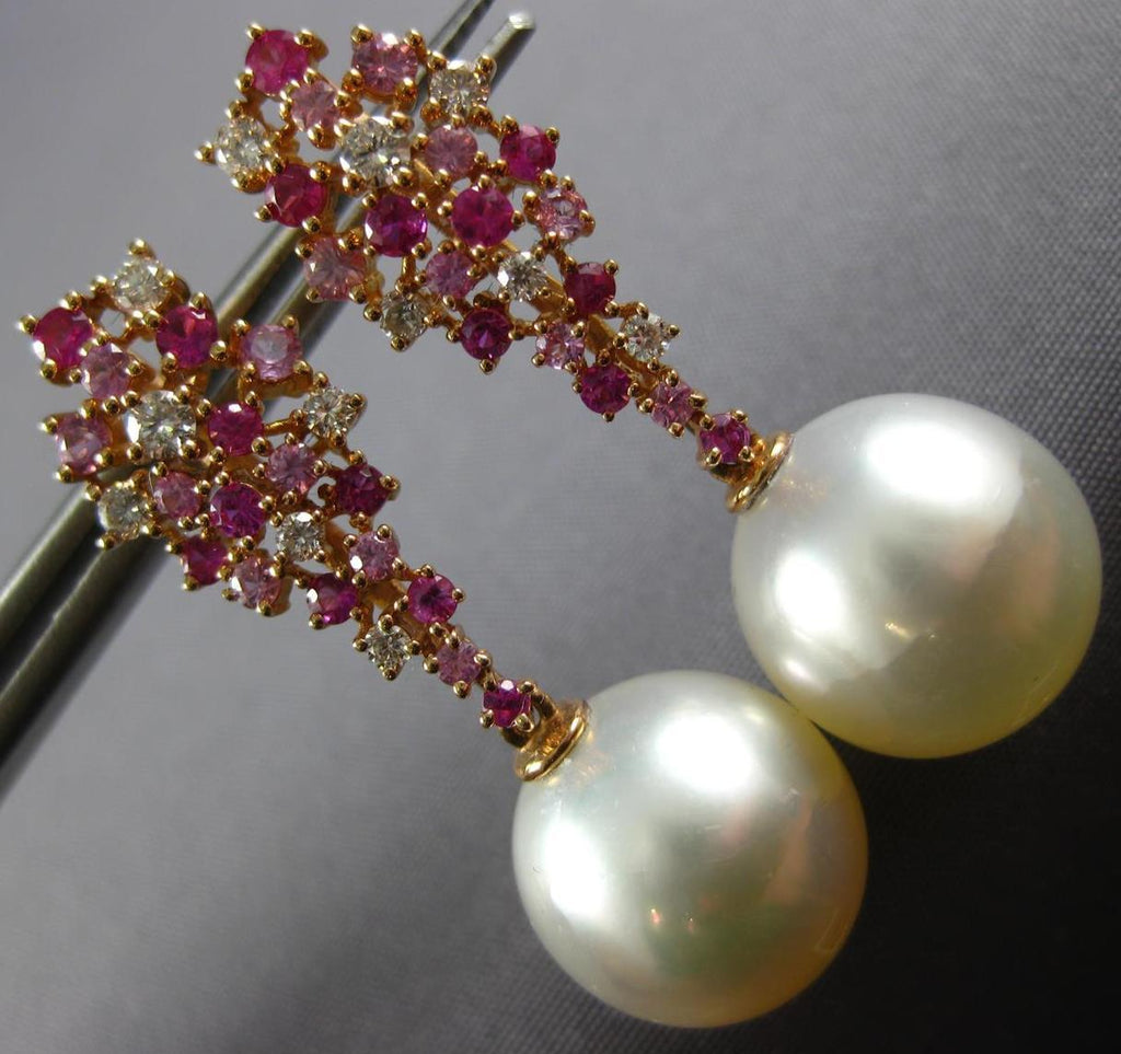 1.4CT DIAMOND AAA PINK SAPPPHIRE & RUBY & SOUTH SEA PEARL 18K ROSE GOLD EARRINGS