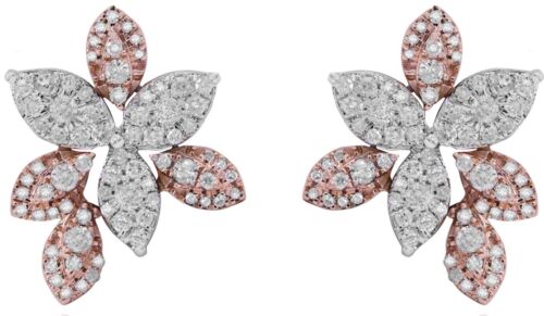 1.50CT DIAMOND 14KT ROSE & WHITE GOLD 3D MULTI LEAF FLOWER FUN HANGING EARRINGS