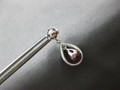 14KT WHITE GOLD HANGING EARRINGS. 3D TEAR DROP DESIGN. ROUND DIAMONDS ARE F/G COLOR, VSSI CLARITY .23 CARATS. AAA PEAR SHAPE RUBIES ARE 1.27 CARATS. MEASURES 20mm X 9mm. WRITTEN APPRAISAL AVAILABLE. COMES IN A PRESENTABLE GIFT BOX.
