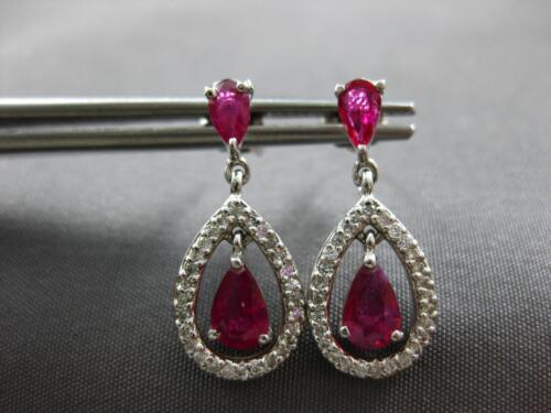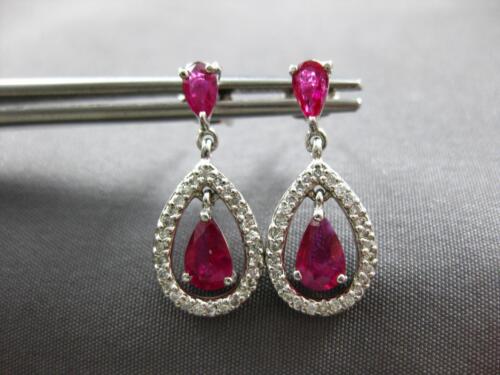 1.50CT DIAMOND & AAA RUBY 14KT WHITE GOLD 3D PEAR SHAPE & ROUND HANGING EARRINGS