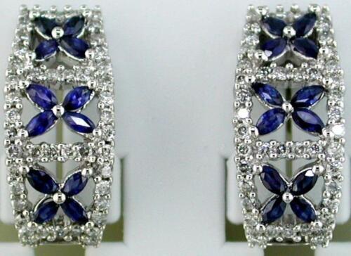 14KT WHITE GOLD CLIP ON HANGING EARRINGS. 3D MULTI FLOWER DESIGN. ROUND DIAMONDS ARE F/G COLOR, VSSI CLARITY .70 CARATS. AAA MARQUISE SAPPHIRES ARE .80 CARATS. WRITTEN APPRAISAL AVAILABLE. COMES IN A PRESENTABLE GIFT BOX.