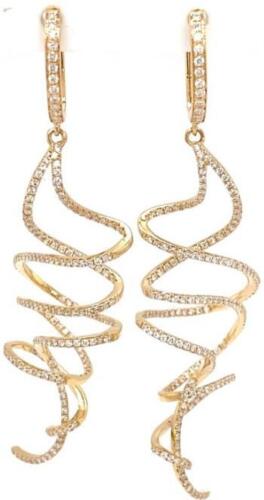 1.58CT DIAMOND 18KT YELLOW GOLD 3D MULTI ROW CRISS CROSS FUN HANGING EARRINGS