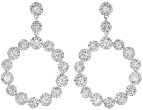 14KT WHITE GOLD FUN HANGING EARRINGS. 3D MULTI FLOWER CIRCLE OF LIFE DESIGN. DIAMONDS ARE F/G COLOR, VSSI CLARITY 1.70 CARATS. WRITTEN APPRAISAL AVAILABLE. COMES IN A PRESENTABLE GIFT BOX.