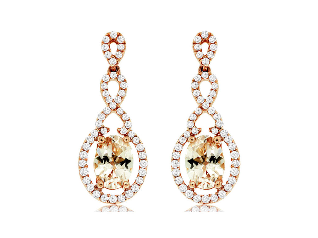 1.72CT DIAMOND & AAA MORGANITE 14K ROSE GOLD OVAL HALO INFINITY HANGING EARRINGS