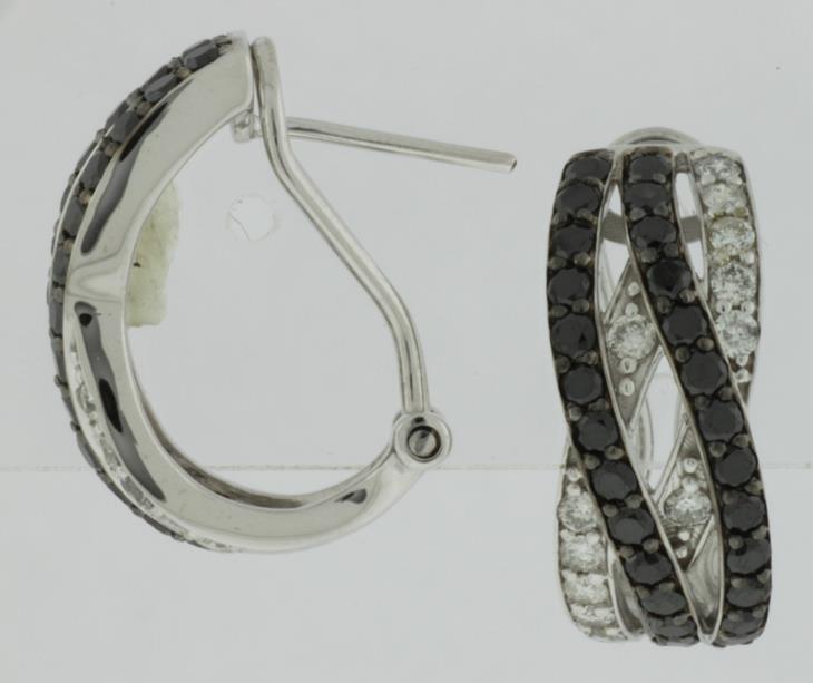 14KT WHITE GOLD CLIP ON HANGINGEARRINGS. 3D MULTI ROWCRISS CROSSDESIGN. WHITEDIAMONDS ARE F/G COLOR, VSSI CLARITY 0.54CARATS.BLACK DIAMONDSARE 1.21 CARATS.WRITTEN APPRAISAL AVAILABLE. COMES IN A PRESENTABLE GIFT BOX.