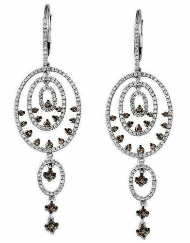 14KT WHITE GOLD EARRINGS. 3D OVAL JOURNEY ETOILE CHANDELIER DESIGN. WHITE DIAMONDS ARE F/G COLOR, VSSI CLARITY .90 CARATS. MOCHA DIAMONDS ARE .85 CARATS. WRITTEN APPRAISAL AVAILABLE. COMES IN A PRESENTABLE GIFT BOX.
