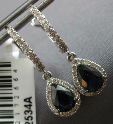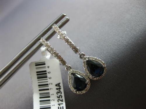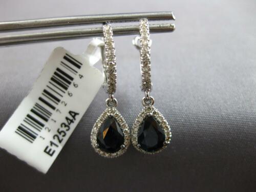 1.76CT DIAMOND & AAA SAPPHIRE 14K WHITE GOLD PEAR SHAPE HUGGIE HANGING EARRINGS