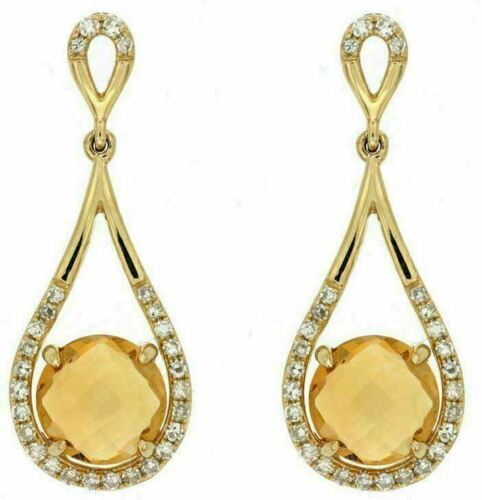 14KT YELLOW GOLD HANGING EARRINGS. 3D CLASSIC TEAR DROP DESIGN. DIAMONDS ARE F/G COLOR, VSSI CLARITY .22 CARATS. AAA ROUND CITRINES ARE 1.65 CARATS. WRITTEN APPRAISAL AVAILABLE. COMES IN A PRESENTABLE GIFT BOX.