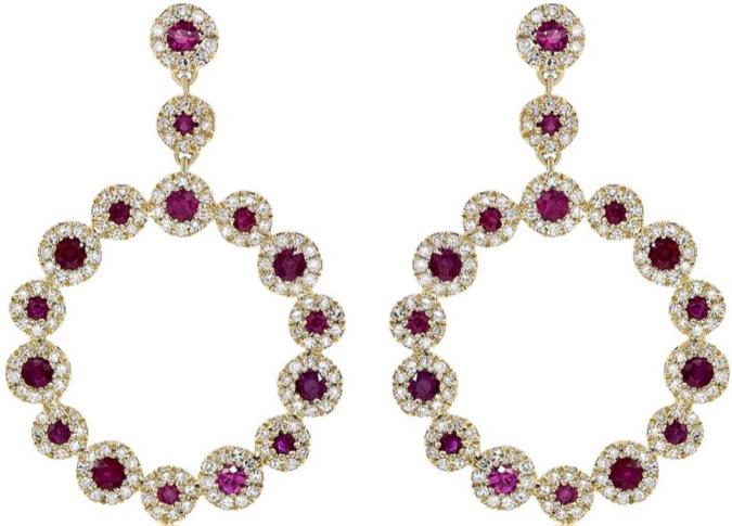 1.87CT DIAMOND & AAA RUBY 14KT YELLOW GOLD 3D CIRCLE OF LIFE HANGING EARRINGS