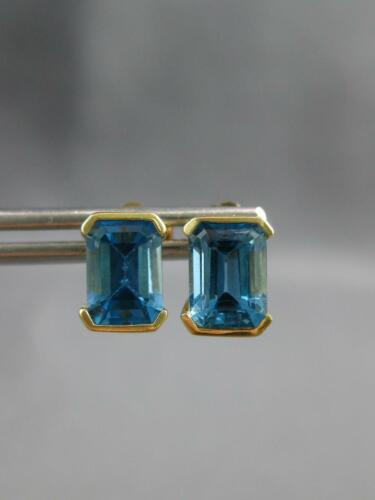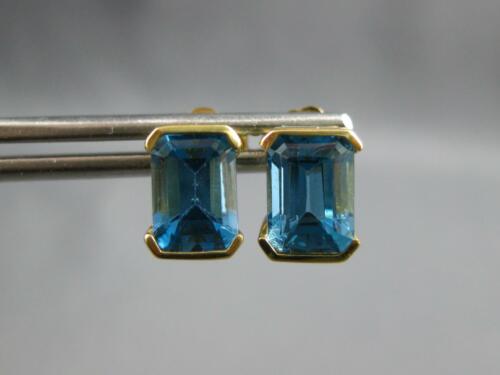 14KT YELLOW GOLD STUD EARRINGS. 3D CLASSIC SEMI BEZEL DESIGN. AAA BLUE TOPAZ ARE 1.92 CARATS. MEASURES 8mm X 5.5mm. WRITTEN APPRAISAL AVAILABLE. COMES IN A PRESENTABLE GIFT BOX.