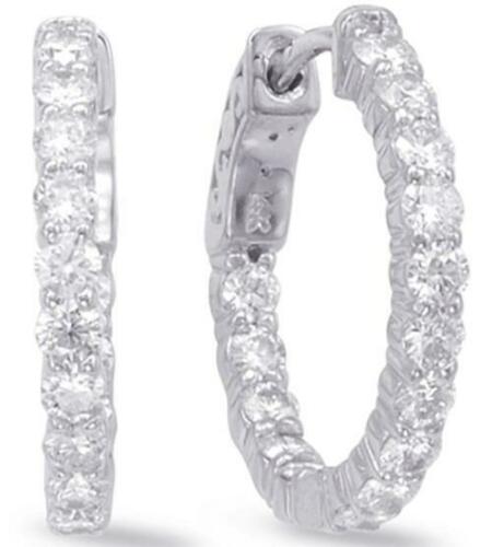 14KT WHITE GOLD HOOP HUGGIE HANGING EARRINGS. 3D CLASSIC INSIDE OUT DESIGN. ROUND DIAMONDS ARE F/G COLOR, VSSI CLARITY 1.92 CARATS. MEASURES 3mm WIDE. WRITTEN APPRAISAL AVAILABLE. COMES IN A PRESENTABLE GIFT BOX.