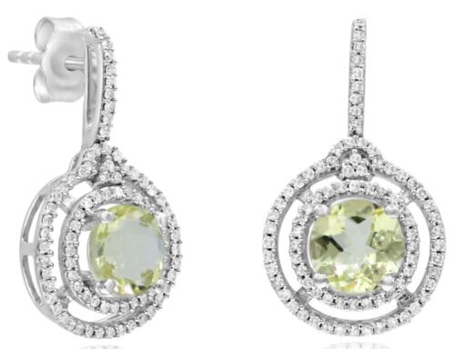 14KT WHITE GOLD FUN HANGING EARRINGS. 3D DOUBLE HALO FLORAL DESIGN. ROUND DIAMONDS ARE F/G COLOR, VSSI CLARITY .37 CARATS. AAA EXTRA FACETED LEMON QUARTZ ARE 1.55 CARATS. WRITTEN APPRAISAL AVAILABLE. COMES IN A PRESENTABLE GIFT BOX.