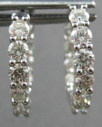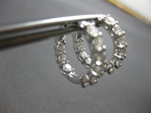 1.94CT DIAMOND 18KT WHITE GOLD ROUND 3D INSIDE OUT HUGGIE HOOP HANGING EARRINGS