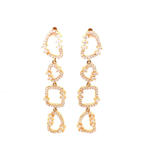 1.95CT DIAMOND 18KT YELLOW GOLD 3D HEART SHAPE TEAR DROP FUN HANGING EARRINGS