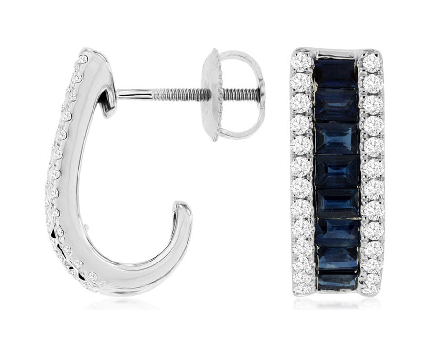 1.95CT DIAMOND & AAA SAPPHIRE 14KT WHITE GOLD EMERALD CUT UMBRELLA FUN EARRINGS