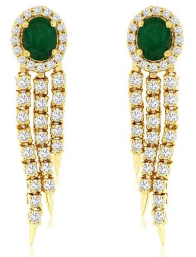 1.96CT DIAMOND & AAA EMERALD 14KT YELLOW GOLD OVAL CHANDELIER HANGING EARRINGS