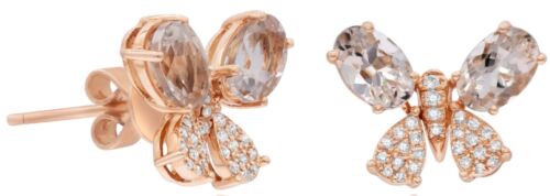14KT ROSE GOLD LOVE STUD EARRINGS. 3D BUTTERFLY DESIGN. ROUND DIAMONDS ARE F/G COLOR, VSSI CLARITY .15 CARATS. AAA EXTRA FACETED OVAL MORGANITES ARE 1.82 CARATS. WRITTEN APPRAISAL AVAILABLE. COMES IN A PRESENTABLE GIFT BOX.