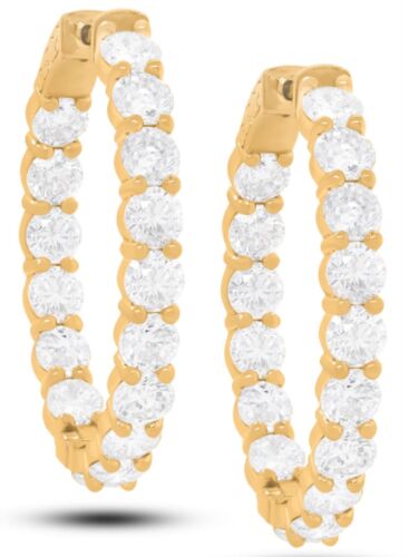 10.0CT DIAMOND 18K ROSE GOLD ROUND SHARED PRONG INSIDE OUT HOOP HANGING EARRINGS