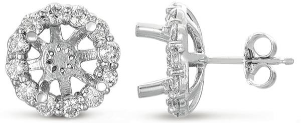 1.08CT DIAMOND 14KT WHITE GOLD 3D 4 PRONG FLOWER HALO SEMI MOUNT STUD EARRINGS
