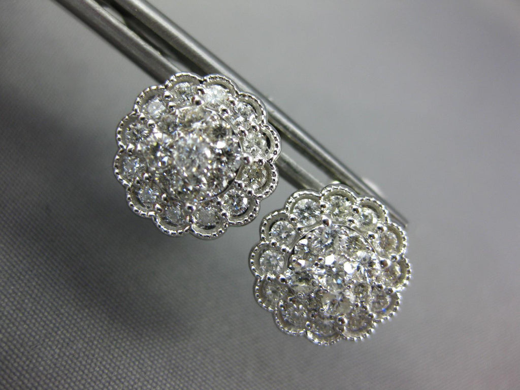 14KT WHITE GOLD STUD EARRINGS. 3D CLUSTER FLOWER FILIGREE MILGRAIN CLASSIC DESIGN. DIAMONDS ARE F/G COLOR, VSSI CLARITY 1.0 CARAT. MEASURES 11mm X 11mm. WRITTEN APPRAISAL AVAILABLE. COMES IN A PRESENTABLE GIFT BOX.