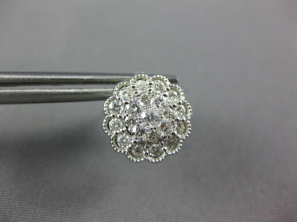 1.0CT DIAMOND 14KT WHITE GOLD 3D CLUSTER FLOWER FILIGREE CLASSIC STUD EARRINGS