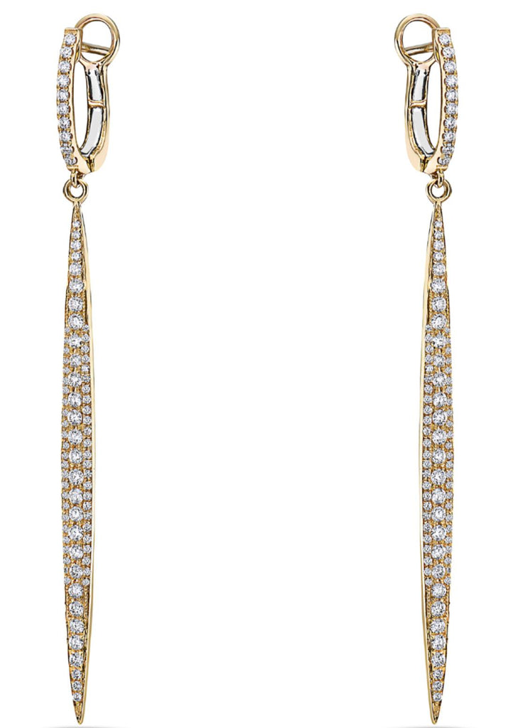1.21CT DIAMOND 18K YELLOW GOLD 3D ELONGATED BAR CLASSIC CLIP ON HANGING EARRINGS