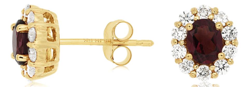 14KT YELLOW GOLD STUD EARRINGS. 3D CLASSIC FLOWER DESIGN. ROUND DIAMONDS ARE F/G COLOR, VSSI CLARITY .45 CARATS. AAA OVAL RHODOLITES ARE .90 CARATS. WRITTEN APPRAISAL AVAILABLE. COMES IN A PRESENTABLE GIFT BOX.