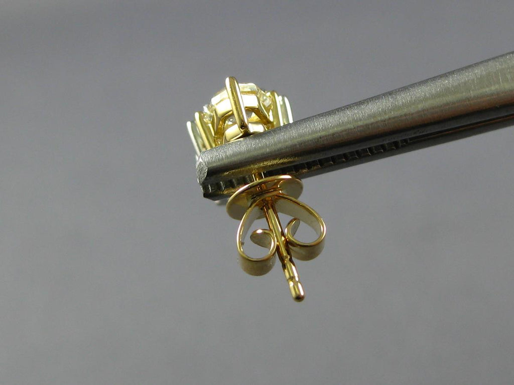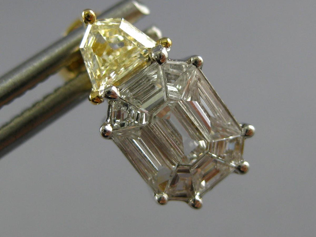 1.3CT WHITE & CANARY DIAMOND 18KT 2 TONE GOLD BAGUETTE & KITE CUT STUD EARRINGS