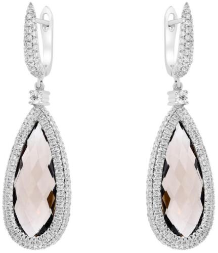 14.93CT DIAMOND & AAA SMOKY TOPAZ 14KT WHITE GOLD 3D TEAR DROP HANGING EARRINGS
